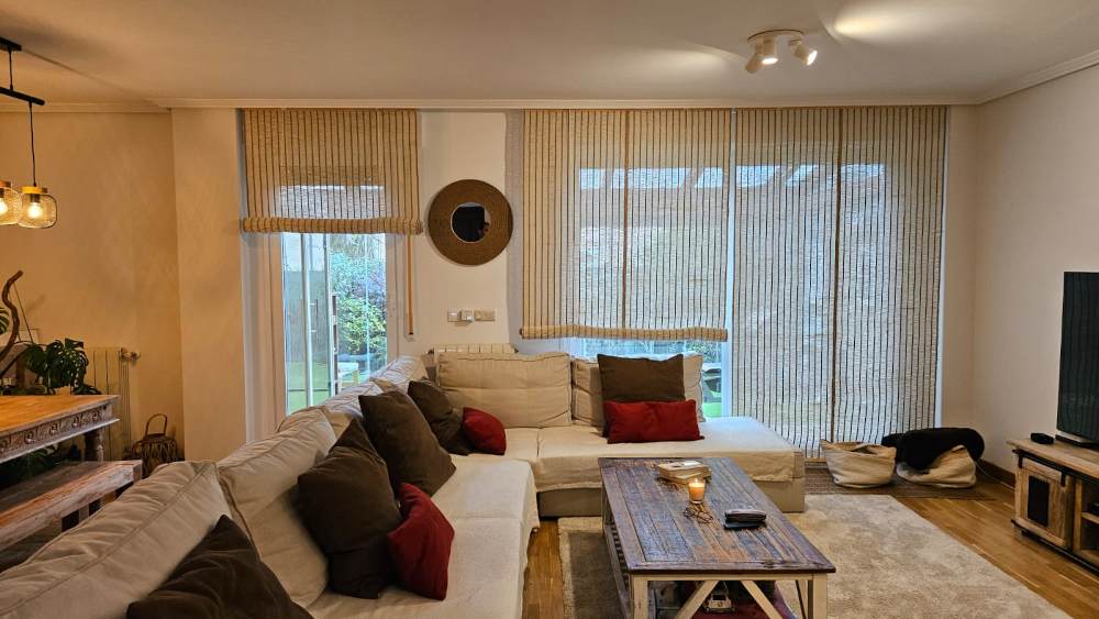 Modelos modernos, como madera de ramin, y nuestra gran especialidad que es la cortina de pita rizada en color natural, mezclilla y marrón, ideal para decoración de interiores y exteriores, y en acristalamientos y salidas a jardines, porches y terrazas.